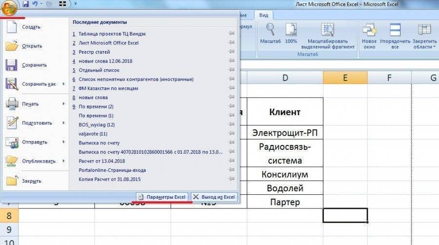 На вкладке Файл выберите Параметры. В Excel 2007 нажмите кнопку Microsoft Office и выберите Параметры Excel.