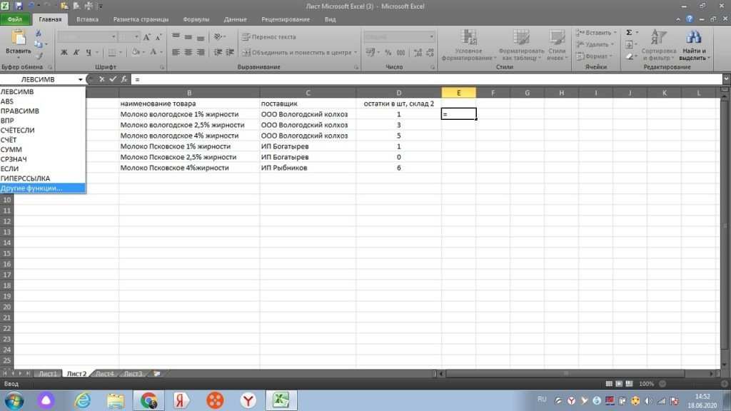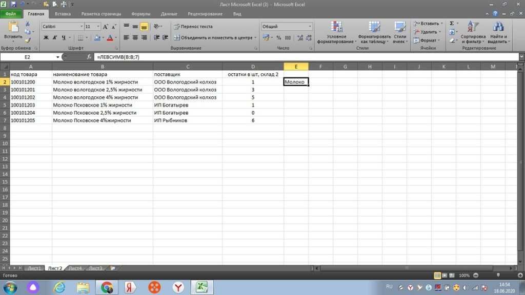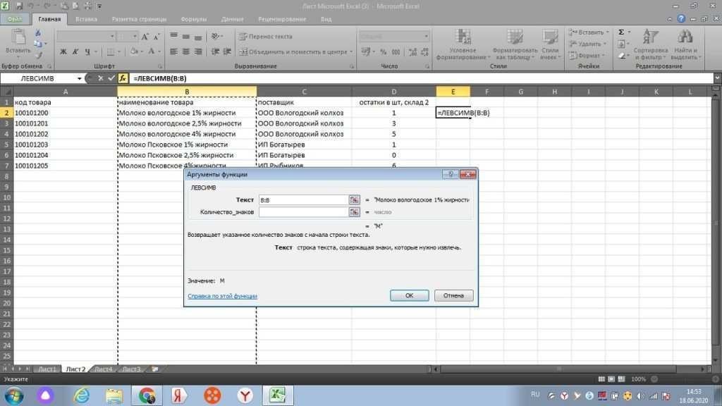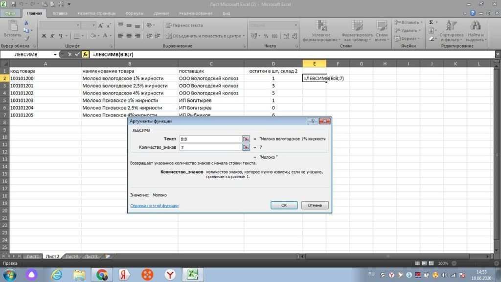 Итак, нам просто нужно взять часть полного имени. Давайте посмотрим на наш Рис. 29, например, нам просто нужно слово «молоко». Также ищем = levsymb в окне поиска формул.
