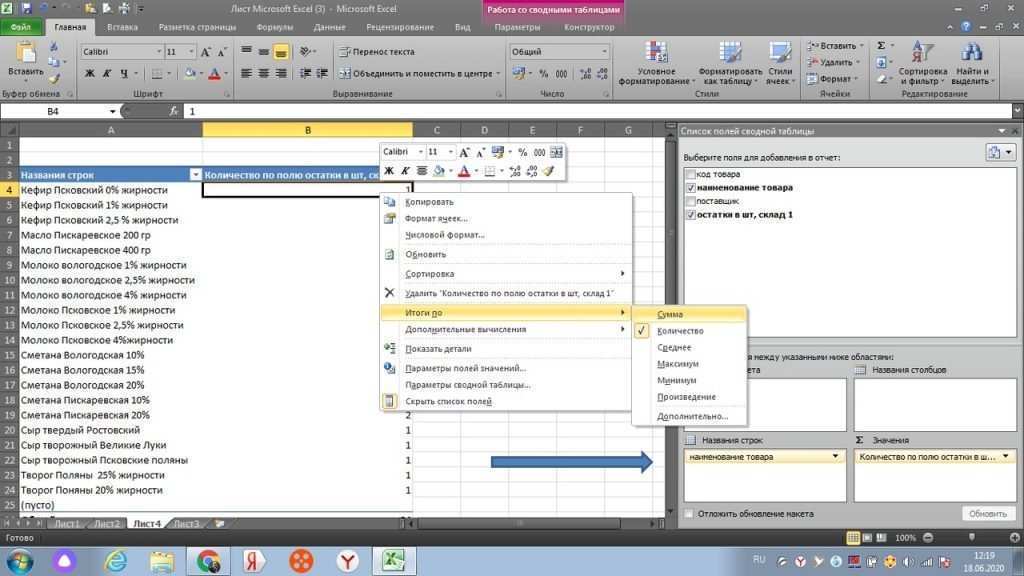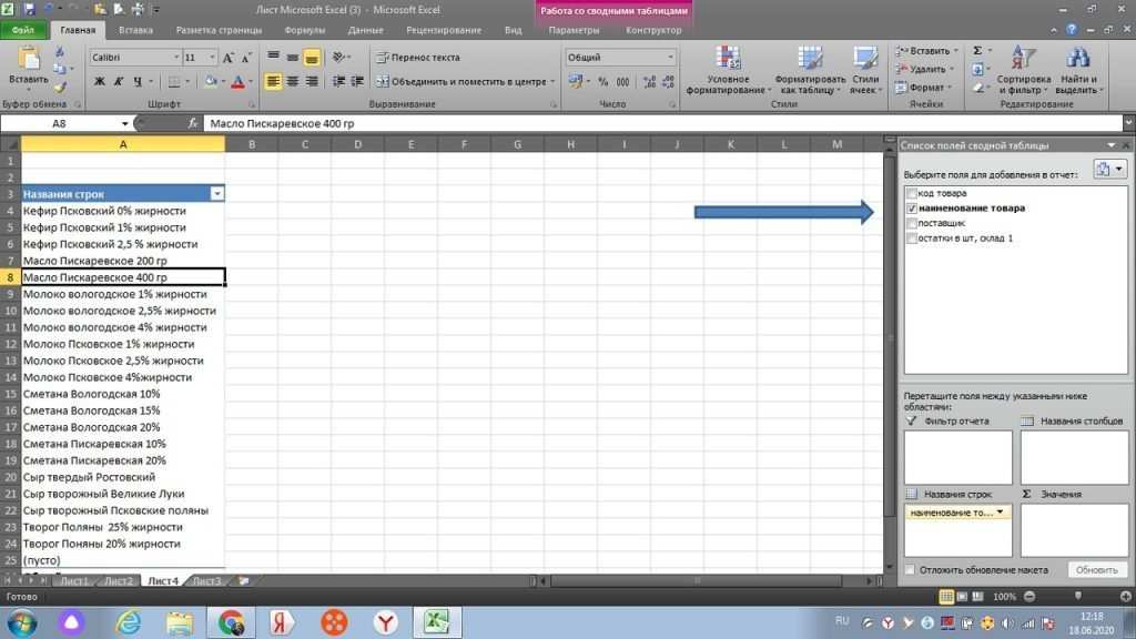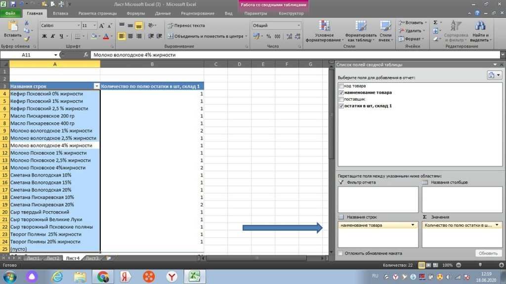Сводная таблица используется для сведения разрозненной информации. Сегодня мы также узнаем, как это сделать. Здесь нет ничего сложного. Например, нам нужно, сколько у нас одного и того же продукта, но не по марке, а по типу продукта.