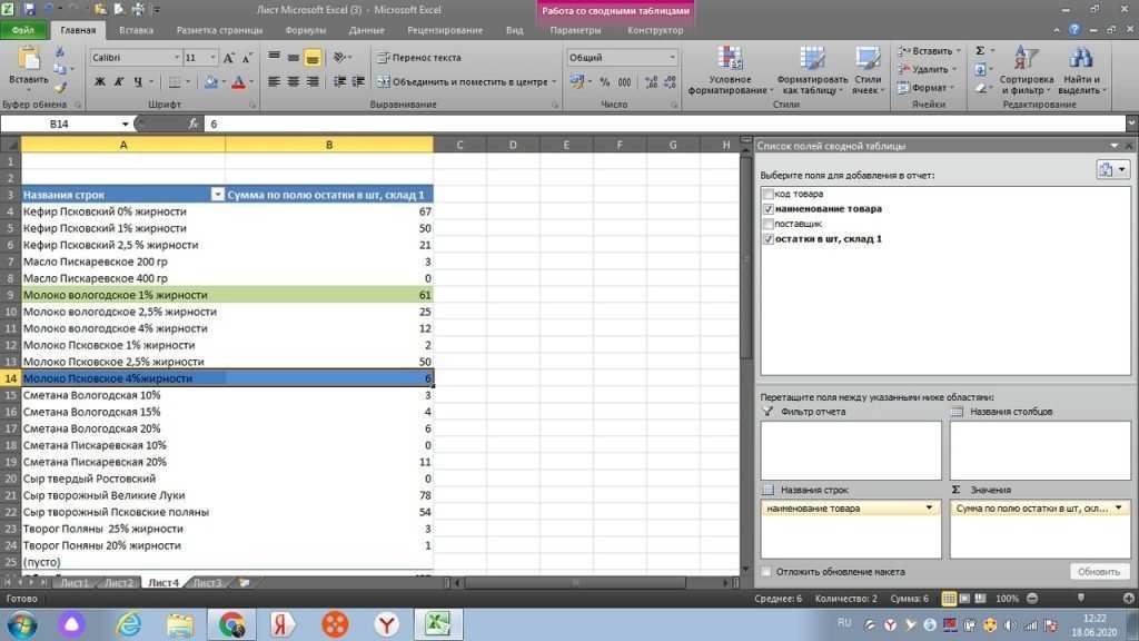 То же самое у нас в сводном столе (рис. 18) 6 и 61 шт.
