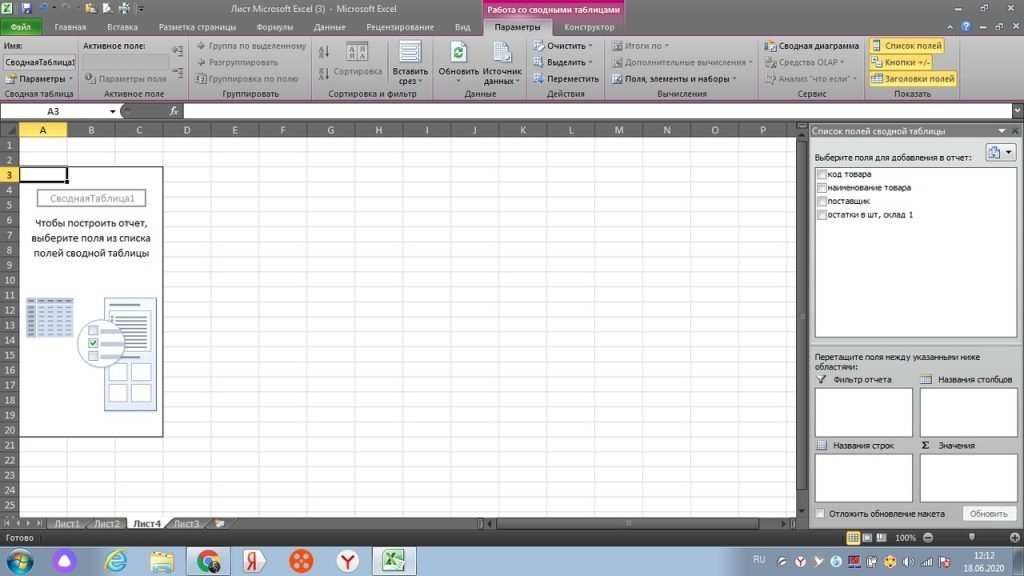Подтверждаем команду нажатием кнопки «ок». Мы получаем на новом листе нашей страницы Excel возможность построения сводной таблицы, см. Рис. 14.