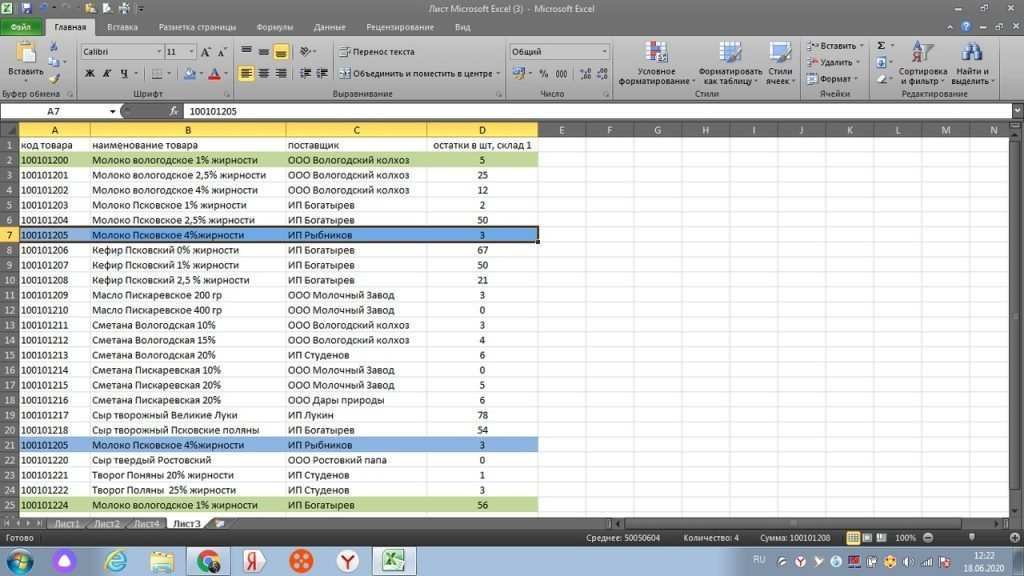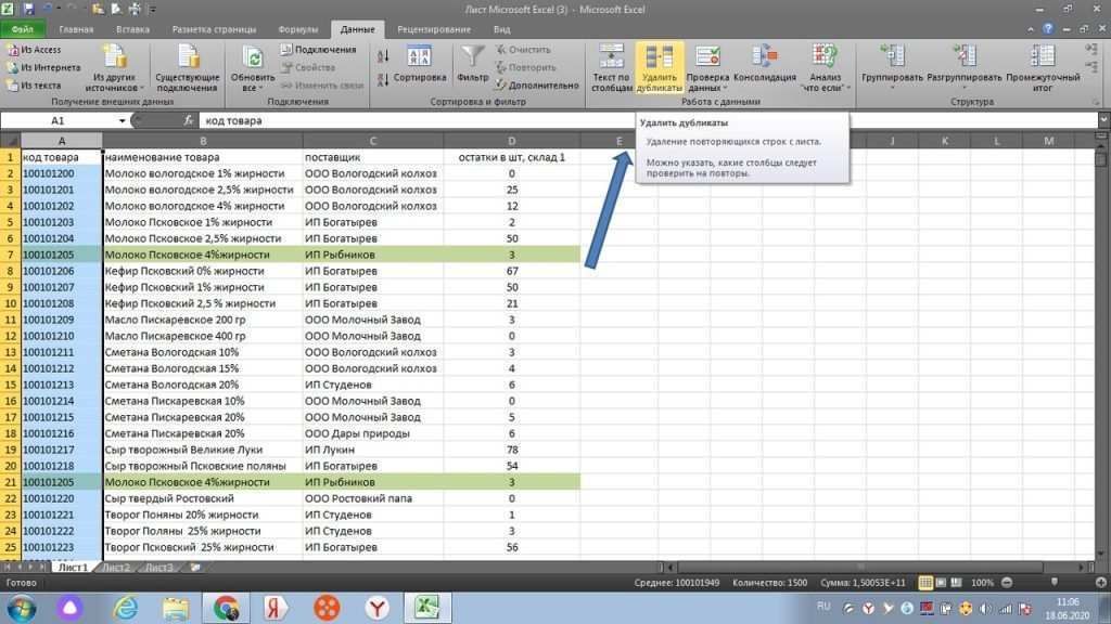 Если бы у нас в списке было три одинаковых товара, excel, соответственно проставляйте цифру 3. И так далее. Уже через простой фильтр вы можете выбрать все, что больше 1, и увидеть полную картину.