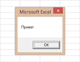 Функция MsgBox отображает информационное сообщение с указанным текстом. В нашем примере это «Привет».