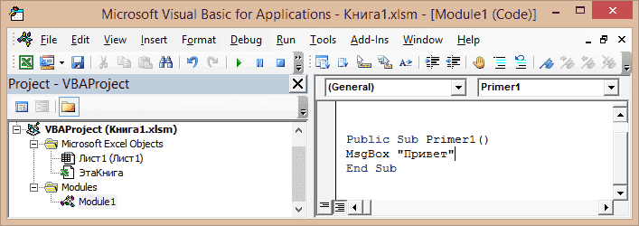 Знакомство с редактором VBA
