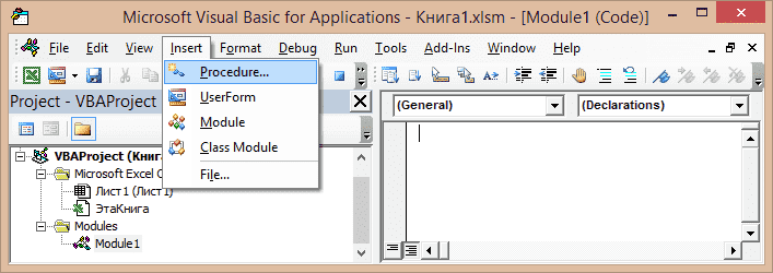 Вставляем код VBA в книгу Excel