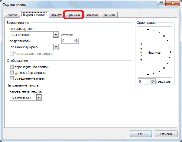 В открывшемся окне формата ячейки перейдите на вкладку «Границы».