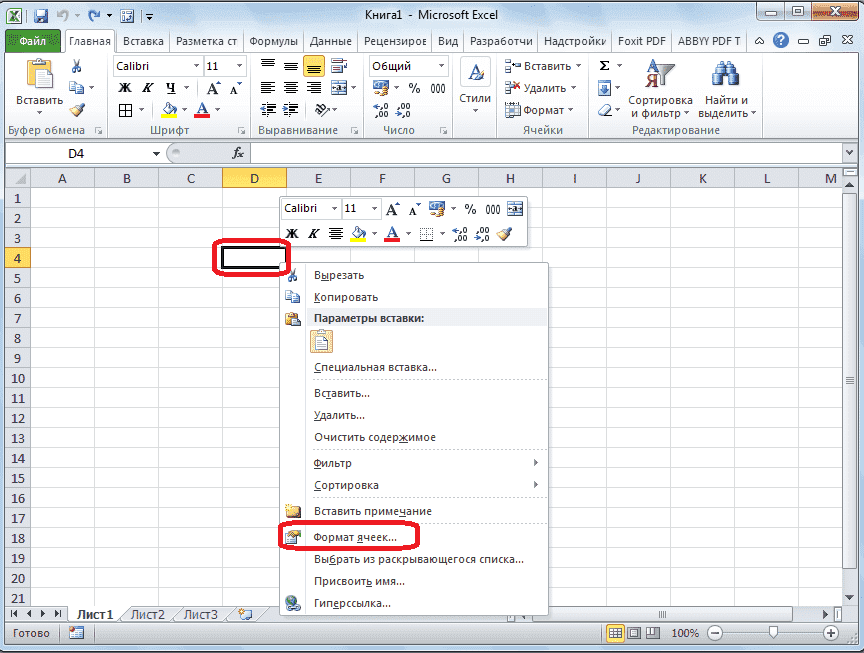 - Щелкните правой кнопкой мыши нужную ячейку и в появившемся контекстном меню выберите пункт «Форматировать ячейки...». Или набираем сочетание клавиш Ctrl + 1.