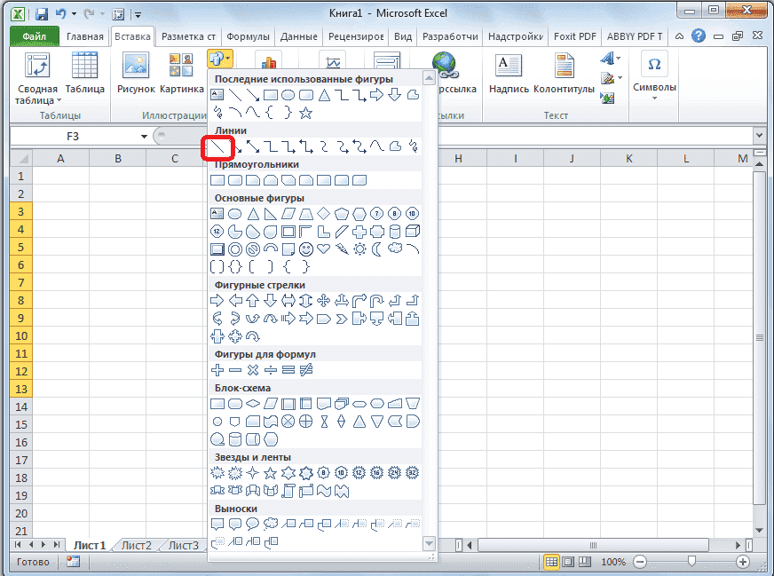 В открывшемся меню в блоке «Линии» нажмите на самую первую фигуру.