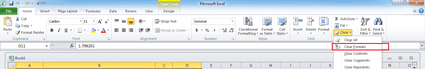 при использовании Excel 2010: выделите ячейки в таблице; перейти на домашнюю страницу / изменить / очистить / очистить форматирование. Затем снимите фильтр.