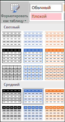 Если в вашей книге есть диапазон данных, который не отформатирован как таблица, Excel автоматически преобразует его в таблицу, когда вы выбираете ее стиль. Вы также можете изменить формат существующей таблицы, выбрав другой вариант.