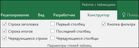 На вкладке Конструктор таблицы в группе Параметры стиля установите или снимите флажки для следующих элементов.