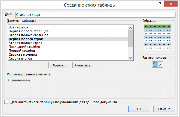 Чтобы применить новый стиль таблицы в качестве стиля по умолчанию для текущей книги, установите флажок Установить как стиль таблицы по умолчанию для этого документа.