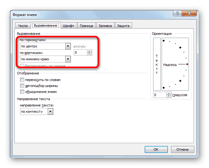 Также на той же вкладке вы можете разместить текст внутри ячейки по горизонтали и вертикали.