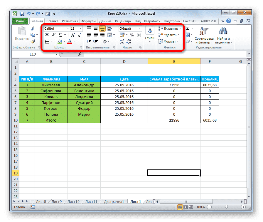 Инструменты форматирования ленты находятся на различных вкладках, но большинство из них находится на вкладке «Главная». Чтобы использовать их, вам нужно выбрать соответствующий элемент на листе, затем нажать кнопку инструмента на ленте.
