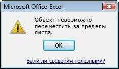 Объект невозможно переместить за пределы листа в excel 2010