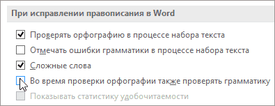 Если вы не хотите, чтобы приложение Office проверяло грамматику (либо при запуске проверки орфографии, либо автоматически при вводе текста), вы можете отключить эту функцию.