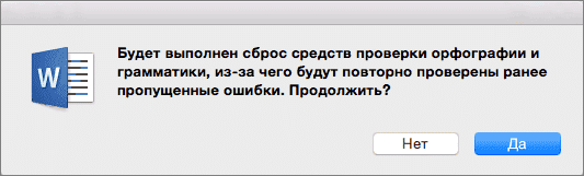 Word предупредит вас, что эта операция приведет к сбросу средств проверки орфографии и грамматики.