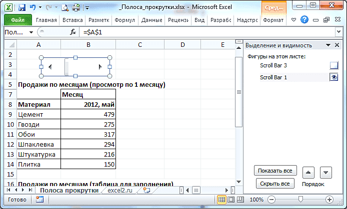 Интерактивные элементы в Excel с использованием Счетчика и Полосы прокрутки