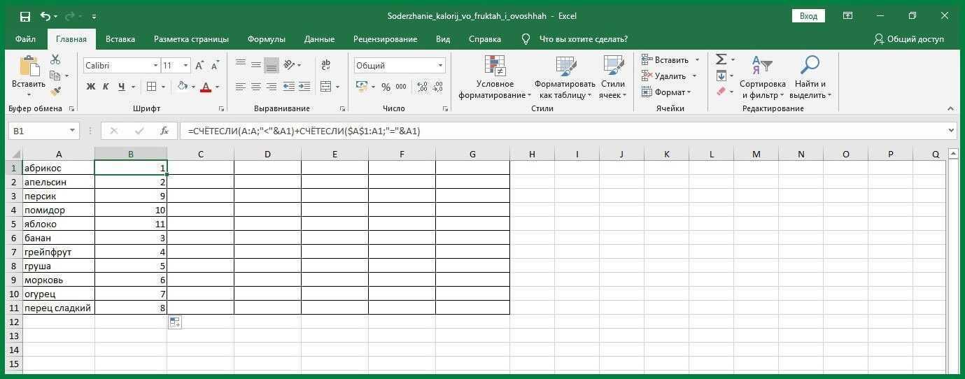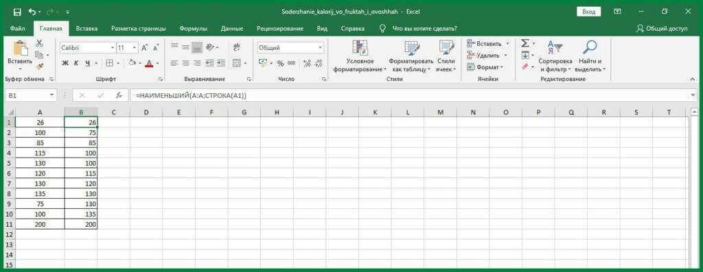 Сортировка данных в Excel по строкам и столбцам с помощью формул