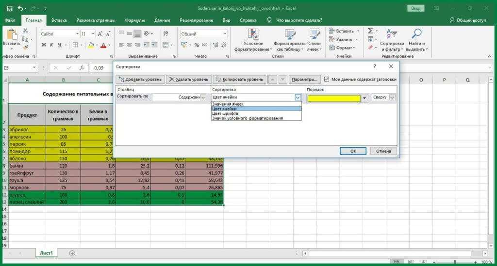 Часто для анализа данных ячейки (или шрифт) заполняются цветом. Сортировка также позволяет сортировать данные на основе их форматирования.