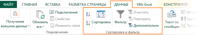 - На вкладке «Данные» найдите группу команд Сортировка и [фильтр].