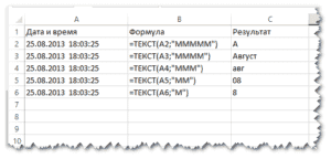 Получить месяц из даты с помощью функции ТЕКСТ в Excel