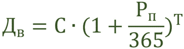 = B2 * (1+ (B3 / 360) * ДНЕЙ360 (B4, СЕГОДНЯ()))