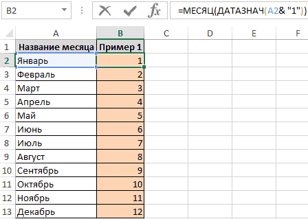 = МЕСЯЦ (ДАННЫЕ ЗНАЧЕНИЯ (A2 & «1″))