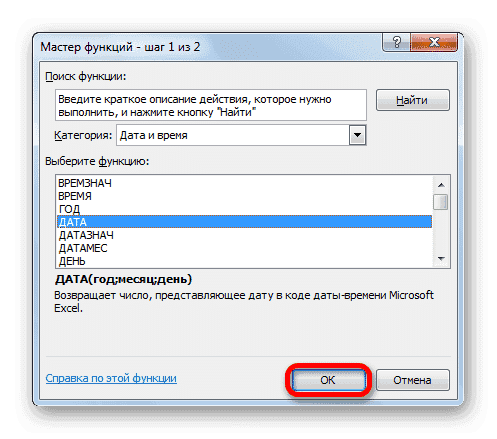 - Открывается окно оператора ДАТА. Эта функция преобразует дату в обычном формате в числовое значение, которое затем должен обработать оператор DAY.