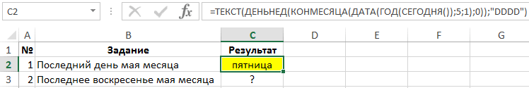 Как определить последнее воскресенье мая месяца в Excel