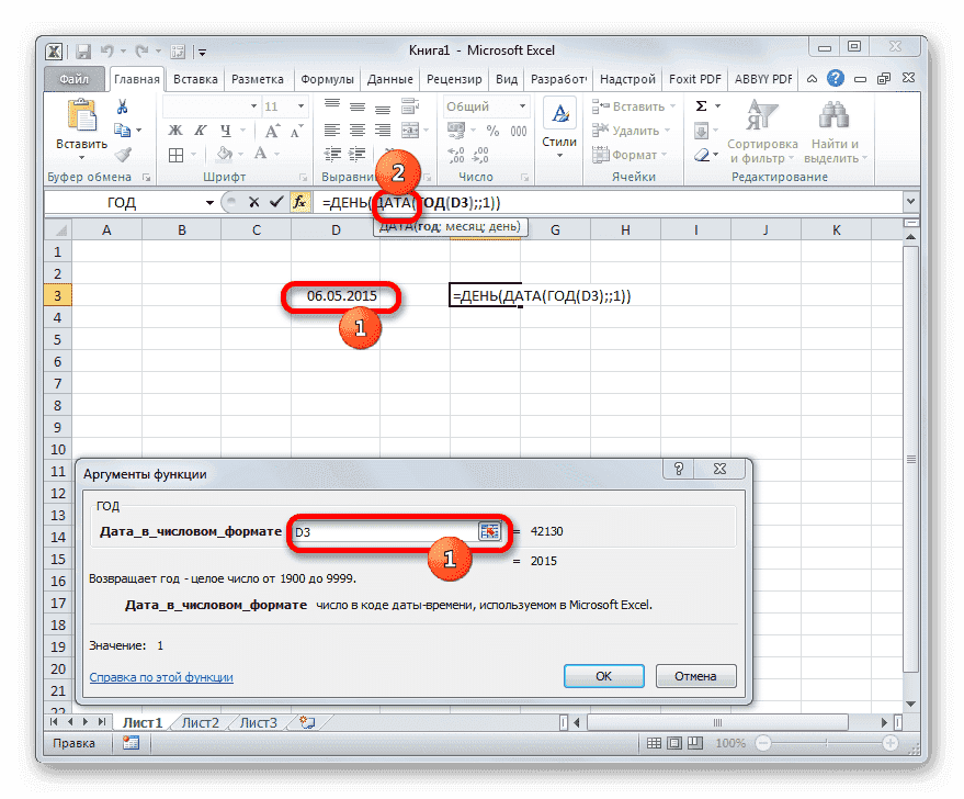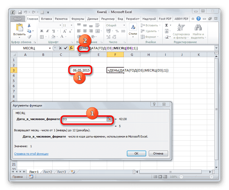 Секрет этой формулы прост. Мы используем его для определения даты первого дня следующего периода, затем вычитаем из него день, получая количество дней в указанном месяце. Переменная в этой формуле является ссылкой на ячейку D3 в двух местах. Если вы замените его адресом ячейки, где указана дата в вашем конкретном случае, вы можете просто перенести это выражение на любой элемент листа без использования функции мастера.