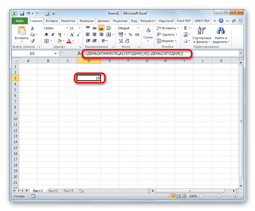 Нам нужно, чтобы в ячейке отображалось количество дней, оставшихся до конца текущего месяца. Как и в предыдущем способе, этот вариант не требует открытия мастера. Вы можете просто ввести в ячейку следующее выражение: