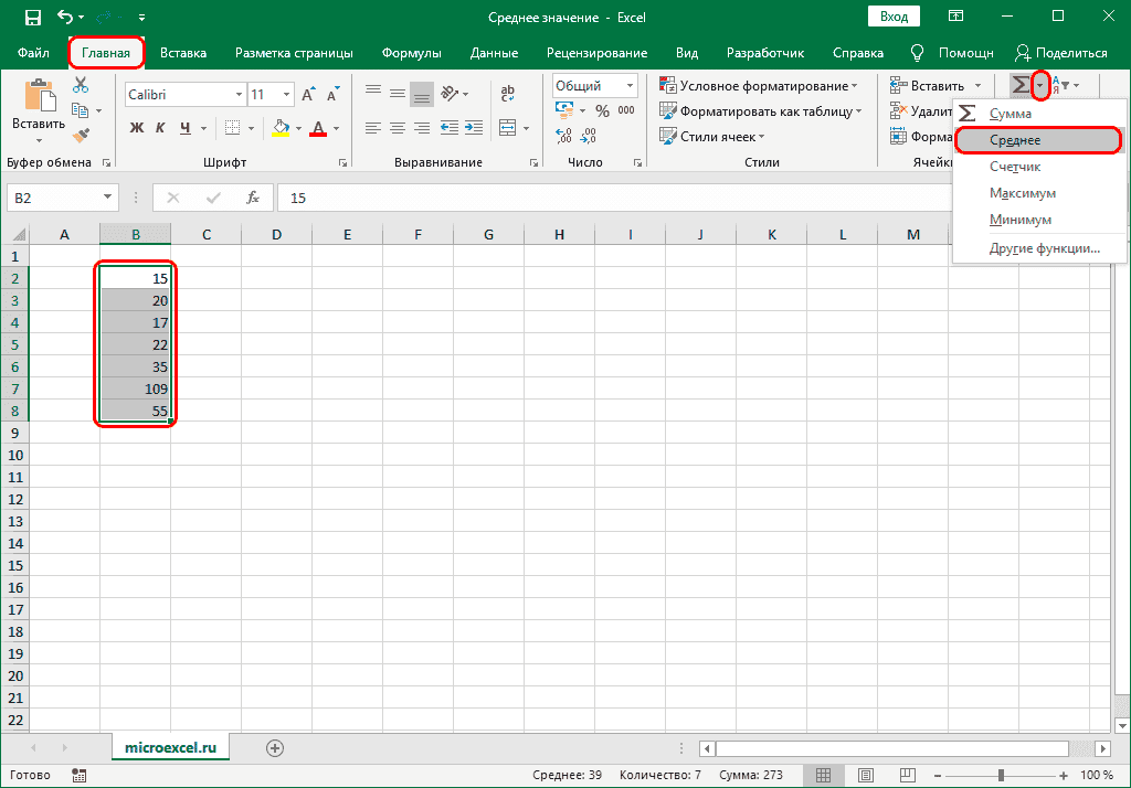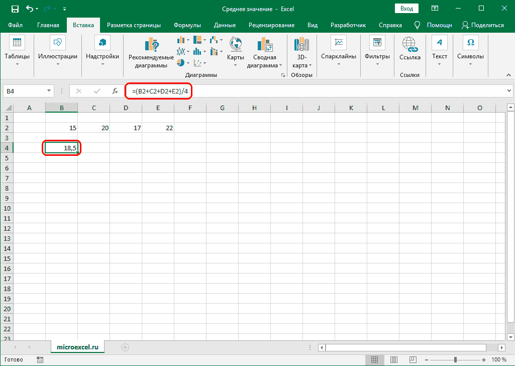 Среднее значение через формулу в Эксель