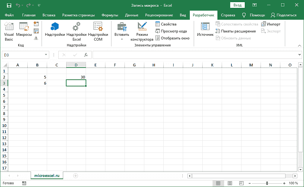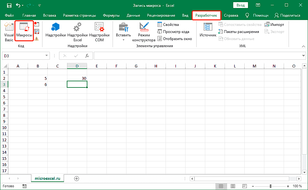Запись макроса