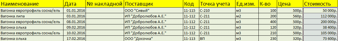 Складской учет в Excel