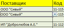 По такому же принципу создаем выпадающий список и автозаполнение для столбцов «Поставщик» и «Код».