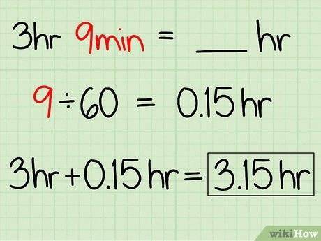- Например, вам нужно преобразовать 3 часа 9 минут в часы. Для этого преобразуйте 9 минут в часы, а затем прибавьте результат к 3 часам. Другими словами: 9 минут x 1 час / 60 минут = 0,15 часа + 3 часа = 3,15 часа.