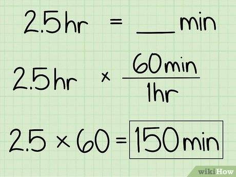 - В нашем примере: 150 минут x 1 час / 60 минут = 2,5 часа или 2,5 часа.