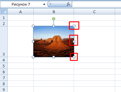 Чтобы поместить изображение в ячейку любого размера, нужно использовать штурвалы, которые расположены по периметру фотографии. С их помощью уменьшите фото до требуемых параметров по высоте и ширине.