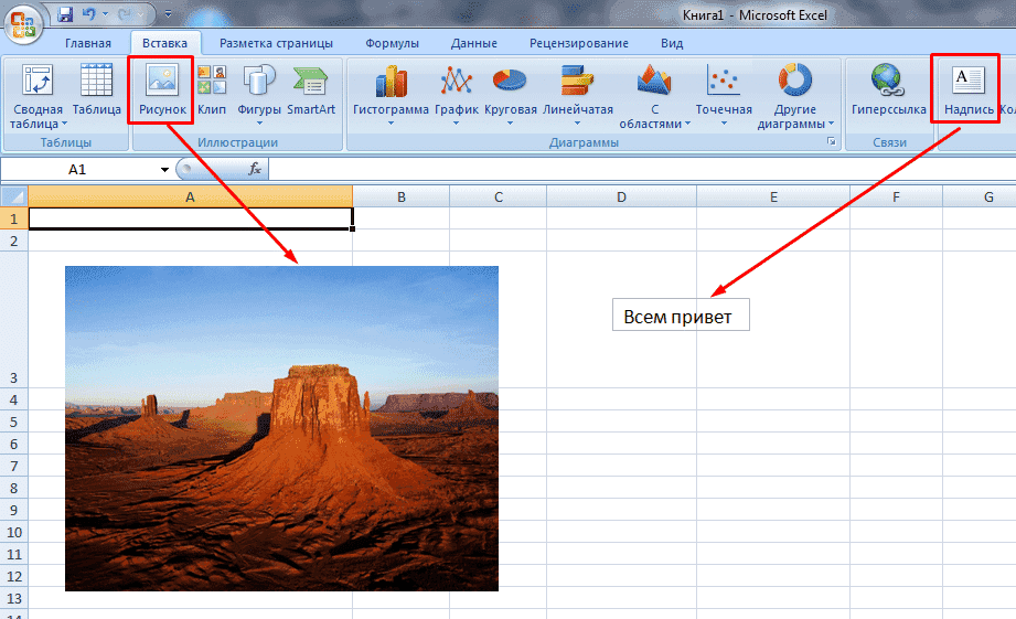 Как вставить в файле эксель картинку, фото