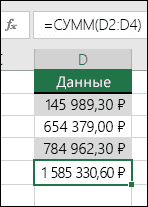 Результатом является автоматический подсчет числовых данных и вывод суммы на следующей строке.