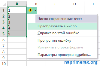 Автосумма в Excel – Преобразование числа в текстовом формате, в числовой