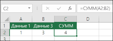 Метод =1+2 или =А+В. Можно написать =1 + 2 + 3 или =A1 + B1 + C2 и получить абсолютно точные результаты, но этот метод ненадежен по ряду причин.