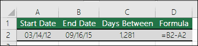 Как получить разницу между датами? Как и значения времени, значения даты можно добавлять или вычитать. Это распространенный пример того, как рассчитать количество дней между датами. Для этого используется простая формула =B2-A2. При работе со значениями даты и времени важно помнить, что дата или время начала вычитаются из даты или времени окончания.