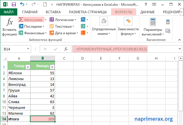 Как использовать Автосумму в Excel только для видимых ячеек