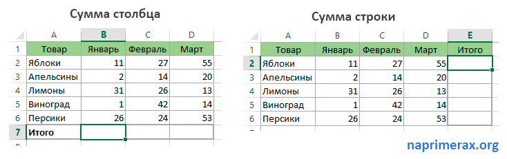 Автосумма в Excel – Суммирование выбранных ячеек столбцам и строкам