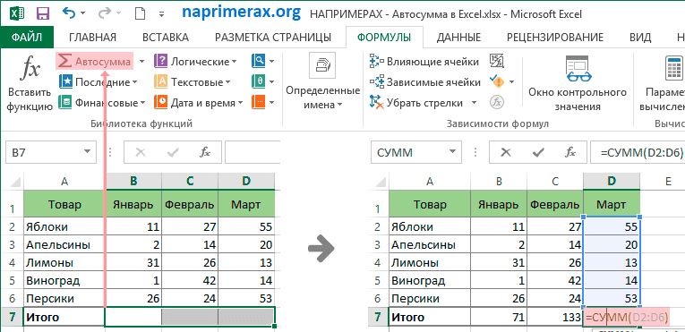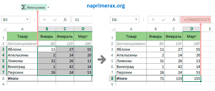 Автосумма в Excel НА ПРИМЕРАХ