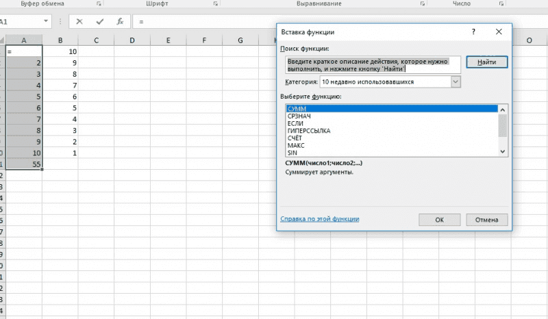 Как в Excel посчитать сумму