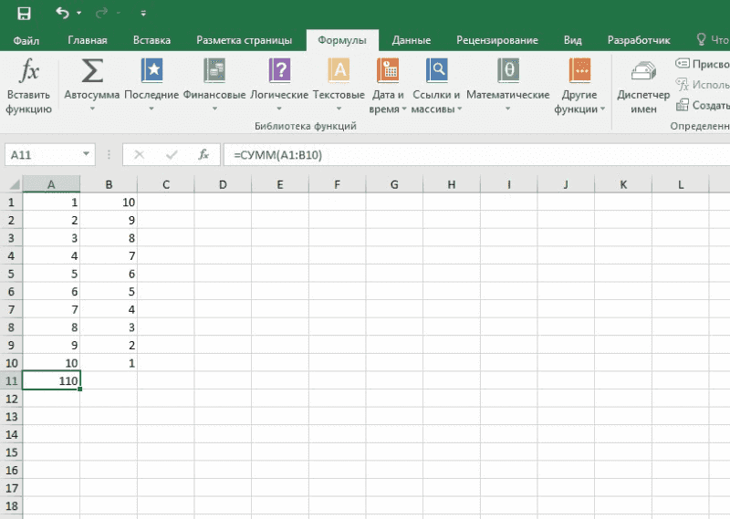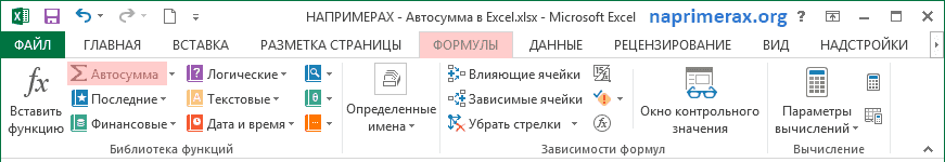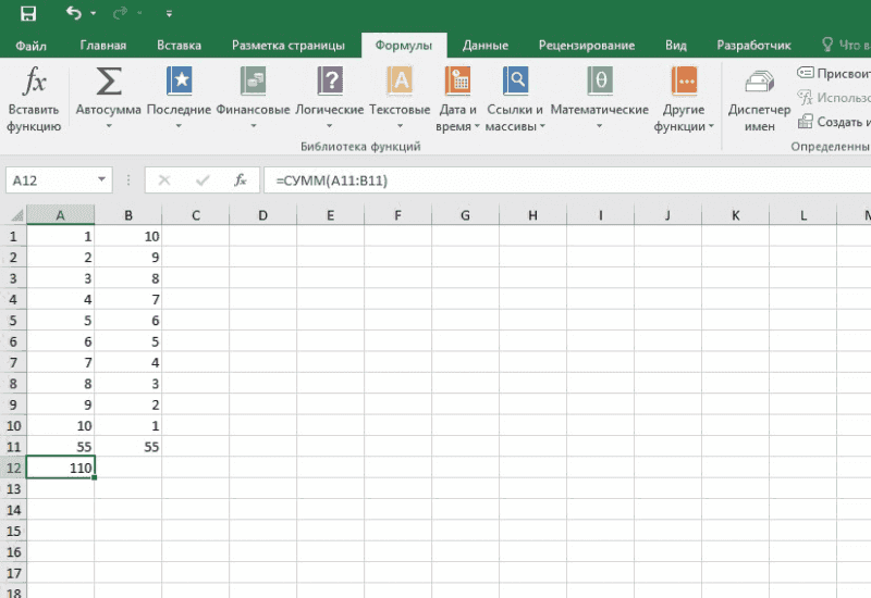 Автосумма в Excel – Кнопка Автосумма во вкладке Формулы