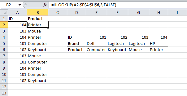 Синтаксис: =HLOOKUP(ключ; диапазон; номер_строки; [диапазон_поиска]).